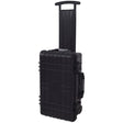 This wheel-equipped foam-inserted tool case, made from rugged and scratch resistant polypropylene, is watertight, dust-proof and crush-proof. There is a piece of relatively thin foam on the very bottom of the case, just functioning as the foam mat. Two pieces of very dense foam are inserted to accommodate your equipment with maximum protection. The tool case is equipped with two wheels and an adjustable telescopic handle to help you carry the case during travels. Its attractive black finish makes it durable for years of use. It is lockable with 2 padlocks for maximum security (Locks not included). All in all, it is a perfect solution for storing and transporting your delicate electronics, audio/video equipment, microphones, cables, computers or music accessories, etc.