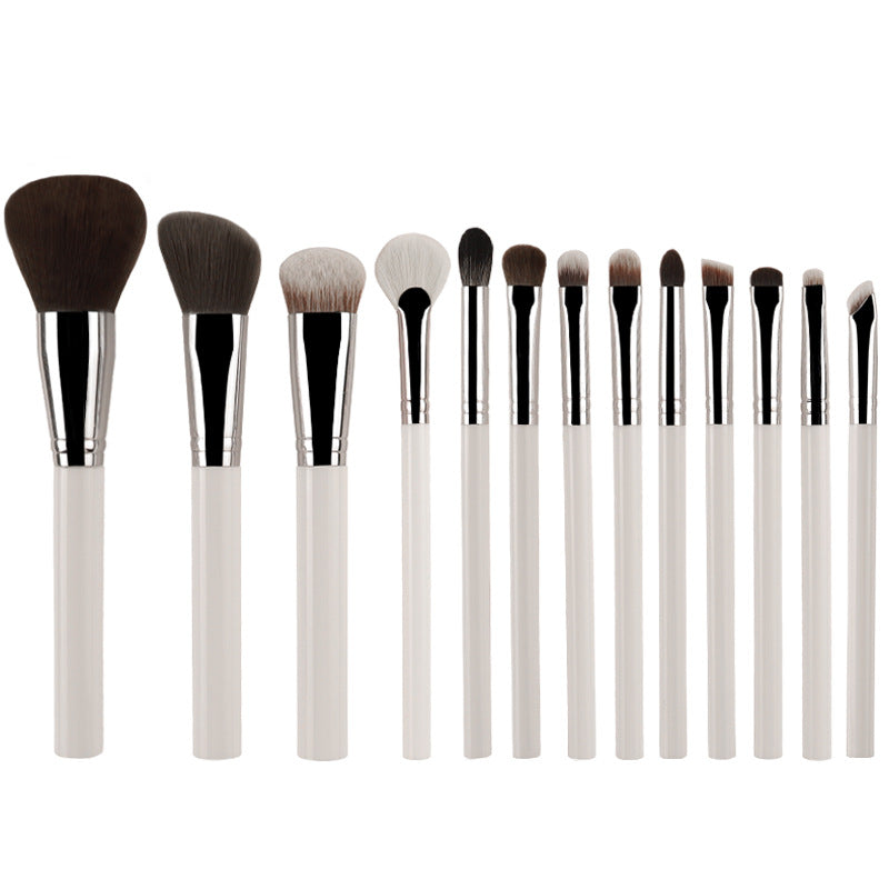 White 13-Piece Makeup Brush Set - Professional Eyeshadow, Concealer, Powder & Blush Brushes with Soft Fiber Bristles
