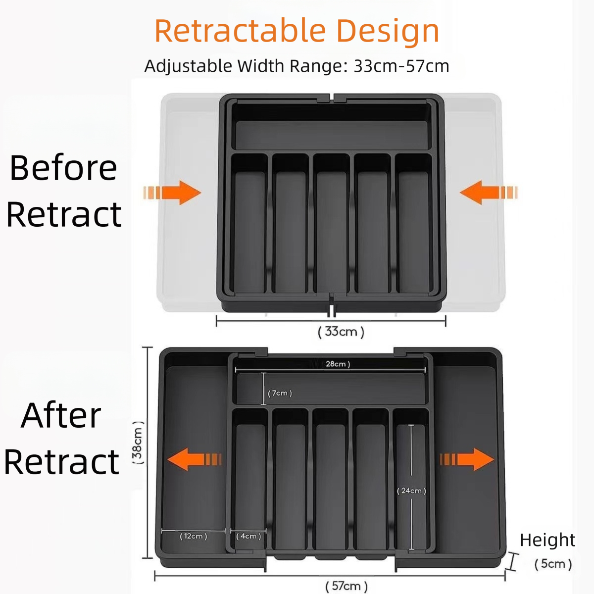 • Large Capacity: Provides a convenient design with a total of **8 dedicated compartments** when fully expanded, easily accommodating full sets of cutlery, serving spoons, and kitchen tools.