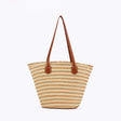 White And Yellow Stripes Handmade Large Capacity Striped Beach Tote Bag with Zipper and Inner Pocket - Summer Vacation Woven Shoulder Bag for Women