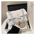 White Chic Quilted Crossbody Bag for Women - PU Leather Diamond Pattern Chain Strap Shoulder Purse with Elegant Clasp