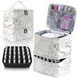 White Marble Double-Layer PU Nail Polish Storage Case with High Capacity for Essential Oils and Nail Lamp - Portable & Adjustable
