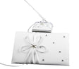 White Wedding Guest Book Register with Silver Pen Matching Stand Set 36 Lined Pages - White Ribbon and Diamante Bow Cover