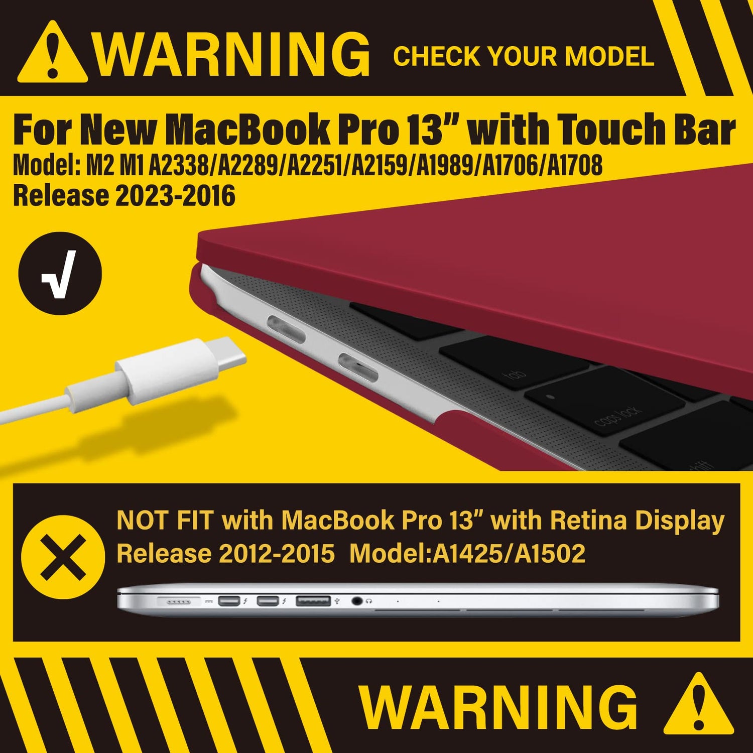- Perfect Fit: Tailored for 2023-2016 M2 M1 MacBook Pro 13 inch models, including A2338, A2289, A2251, A2159, A1989, A1706, and A1708. Ensure compatibility by checking your model number "Axxxx" on the back of your laptop.