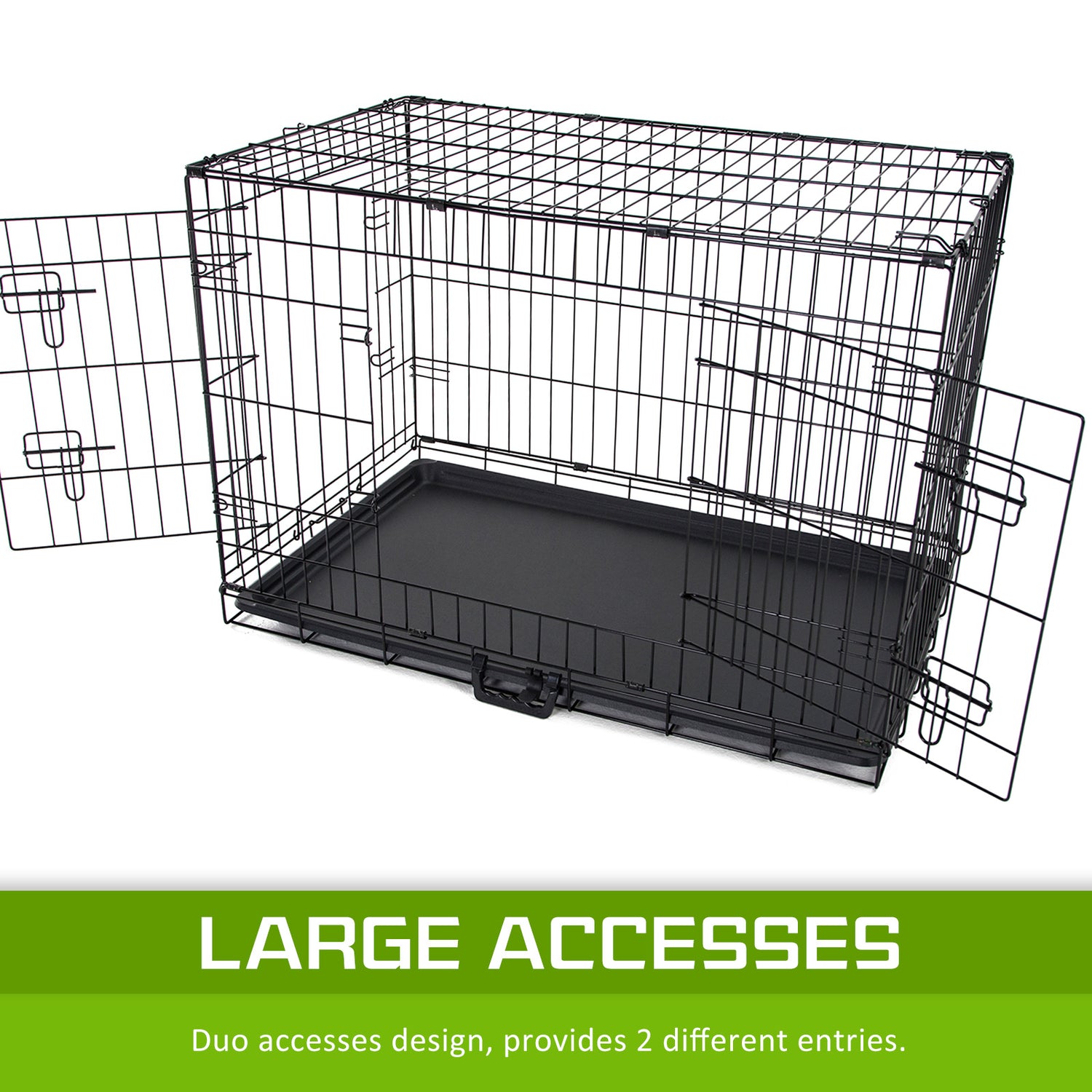 This collapsible wire dog crate are perfect for dogs that are constantly on the go as they require no assembly. They also set up in seconds without assemble or any tools require and fold flat for compact storage and travel.