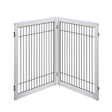 - Double action hinges allows this dog gate to easily adjust into multiple configurations
