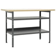 This heavy-duty workbench, standing out with ample storage space and 300 kg loading capacity is an essential addition to your workshop and garage. The large and sturdy tabletop provides a stable platform for all your repair works. The workbench has 2 large shelves to comfortably accommodate drills, cable drums, grinders and other tools. Additionally, the feet are height-adjustable. You can put the workstation wherever you need it, and it will stand firmly even on uneven ground. This workstation is crafted from premium steel and engineered wood, making it extra sturdy, durable and easy to clean. Assembly is easy. The workbench is a great helper whether you want to finish repair works or fulfil your DIY dreams!