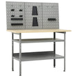This set is combined with 1 workbench and 3 wall panels, and make a practical storage solution to your workshop and garage. The heavy-duty workbench, standing out with ample storage space and 300 kg loading capacity. This workbench has 2 large shelves, to easily accommodate drills, cable drums, grinders and other tools. Additionally, the feet are height-adjustable. This workstation is crafted from premium steel and engineered wood, making it extra sturdy, durable and easy to clean. It is easy to assemble. These tool panels are crafted from solid steel to bear the weight of various tools, like drills, pliers, screwdrivers and wrenches. These panels are perforated for fixing tools easily and securely. The 3 wall panels can be fixed together for extra rigidity. It is an ideal addition to your workbench and workshop cabinets with a practical width of 120 cm.