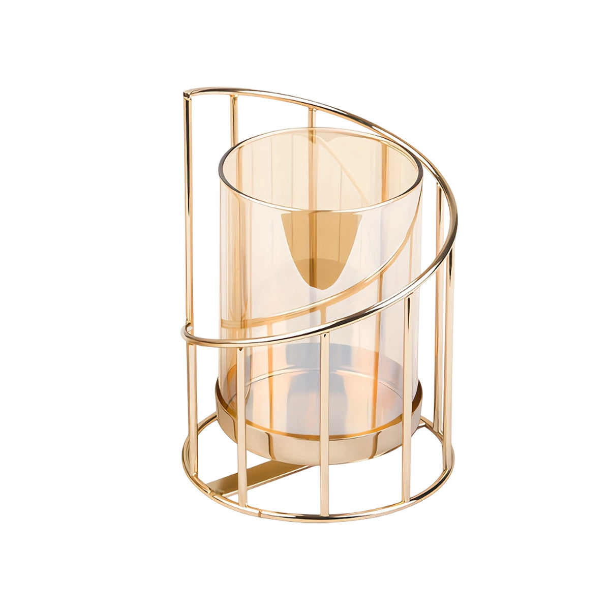 These European-style candlestick ornaments blend elegance and functionality with their golden wrought iron frames and removable amber glass holders. Ideal for romantic dinners, home decor, weddings, or festive settings, they can also double as flower vases. The spiral design adds a unique artistic flair to any environment.